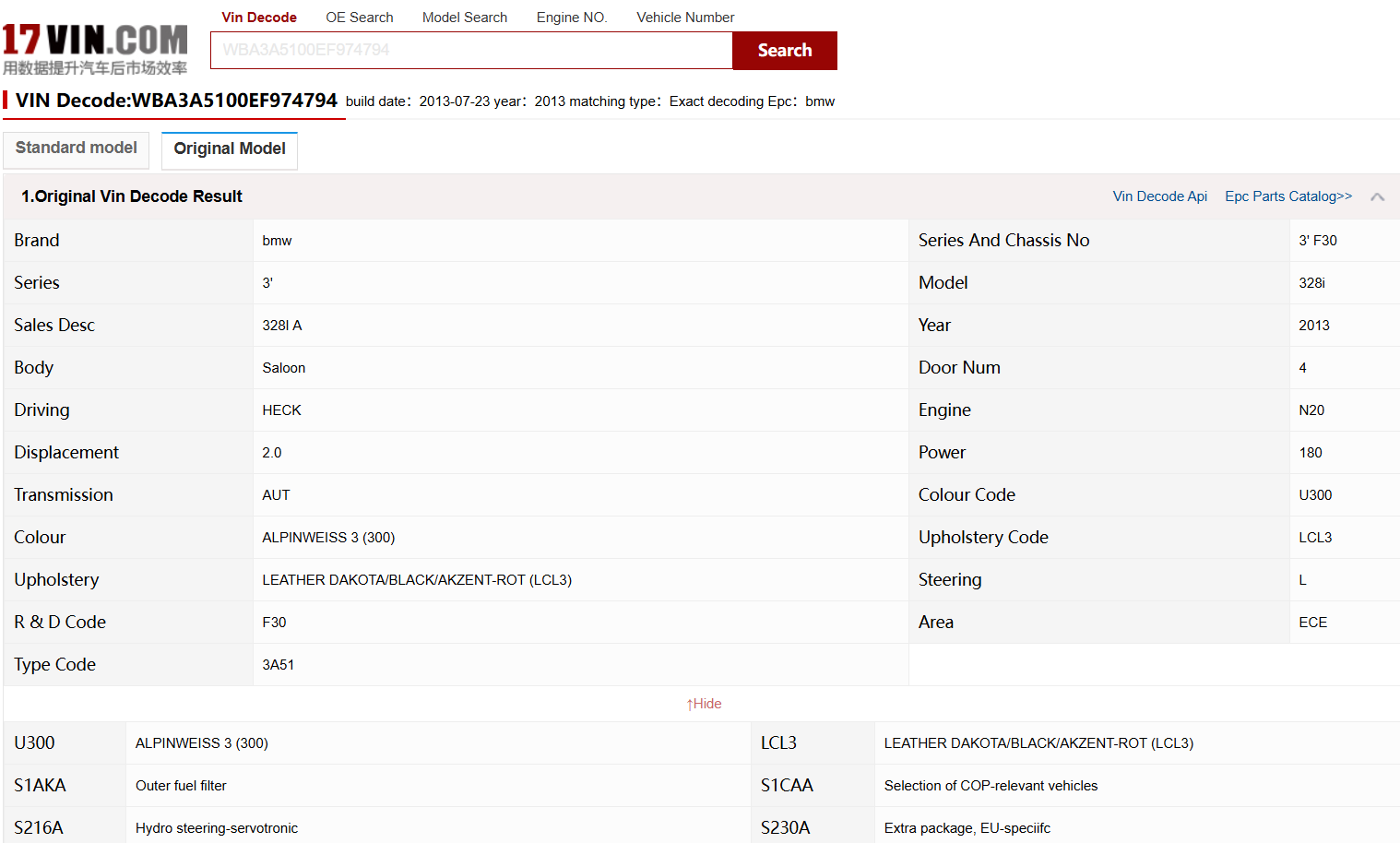 17vin.com not only provides access to BMW's official vehicle database (sourced from EPC systems) but also offers BMW VIN decoding support. Users can retrieve VIN analysis results through